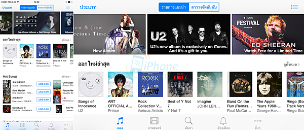 หน้าตาของ iTunes และ App Store ในแนวตั้ง (ซ้าย) และแนวนอน (ขวา)