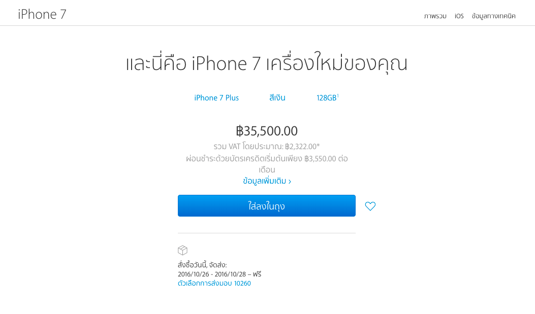 - iPhone 7 Plus ความจุ 128GB ราคา 35,500 บาท