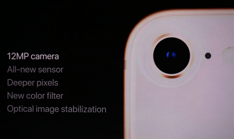 ด้านการถ่ายรูป iPhone 8 มีกล้องหลังเดียว 12 ล้านพิกเซล และ iPhone 8 Plus กล้องหลังคู่ 12 ล้านพิกเซล รูรับแสง f/18 และเลนส์เทเลโฟโต้รูรับแสง f/2.8 มาพร้อมโหมด Portrait Lighting ทำเอฟเฟ็กต์ระยะชัดลึกชัดตื่นได้ดีมากขึ้น ละลายฉากหลังได้เป็นธรรมชาติมากยิ่งขึ้น โดยจะรองรับการถ่ายภาพ Contour Light, Natural Light, Stage Light, Stage Light Mono และ Studio Light ซึ่งจะเห็นว่าทั้งหมดล้วนแล้วแต่เป็นฟีเจอร์การถ่ายภาพที่จะให้แสงเงาและมิติของภาพออกมาเป็นธรรมชาติเหมือนถ่ายในสตูดิโอ