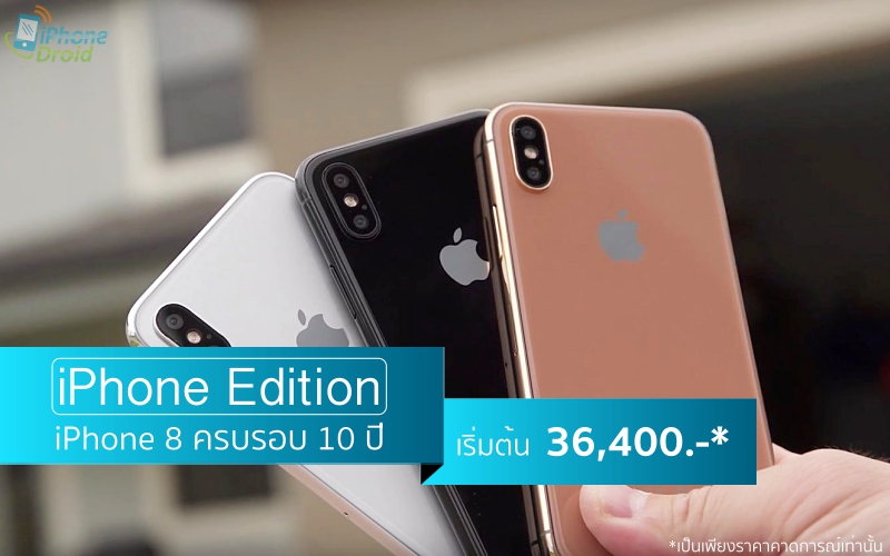 สำหรับ iPhone Edition (iPhone 8 เดิม) ที่หลายสื่อออกมาคาดการณ์ว่าจะมีราคาสูงขึ้น ด้วยดีไซน์และวัสดุหน้าจอที่เปลี่ยนไปใช้เกรดพรีเมียมมากขึ้น ด้วยแผงหน้าจอ OLED โดยทาง Goldman Sachs คาดการณ์ว่าจะมีความจุเริ่มต้นที่ 128GB และความจุสูงสุด 256GB ราคาอยู่ที่ 999 ดอลลาร์สหรัฐ (ประมาณ 34,500 บาท) และ 1,099 ดอลลาร์สหรัฐ (ประมาณ 38,000 บาท) ตามลำดับ เป็นราคาที่ยังไม่รวมภาษี หากเข้ามาในไทยก็น่าจะเริ่มต้นอยู่ที่ราว 36,400-37,400 บาท