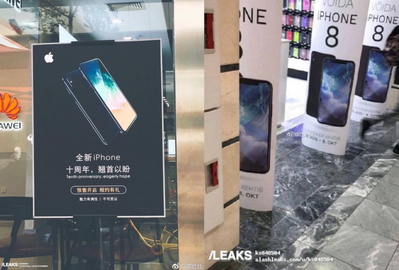 ตามภาพข่าวแรกจะเห็นเป็นป้ายโปสเตอร์ iPhone 8 ที่มีดีไซน์ตัวเครื่องแบบใหม่ มาพร้อมหน้าจอแสดงผลแบบใหญ่เต็มพื้นที่ด้านหน้าและเลนส์กล้องหลังแบบคู่แนวตั้ง โดยมีข้อความเป็นภาษาจีนและข้อความภาษาอังกฤษที่บอกว่าเป็นการฉลองปีที่ 10 ในขณะที่อีกภาพเป็นภาษาเอสโตเนีย “Võida iPhone 8” หรือ “ลุ้นรับ iPhone 8” ที่น่าจะสื่อความหมายการจัดแคมเปญของร้านสำหรับการลุ้นเป็นผู้ชนะได้ iPhone 8 เป็นของรางวัลนั่นเอง