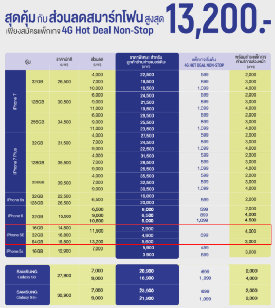 | ราคาพร้อมแพ็กเกจ | iPhone SE 16GB ต้องย้ายค่ายเบอร์เดิม |