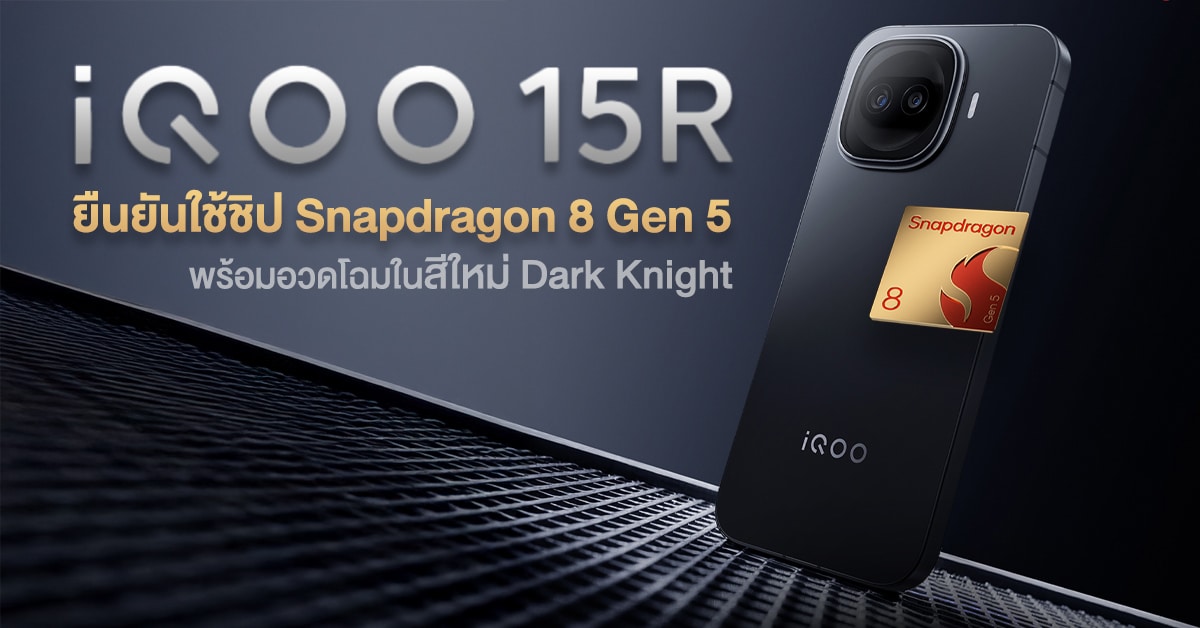 นอกจากเรื่องชิปเซ็ตแล้ว iQOO 15R ยังเผยโฉมในสีดำสุดเท่ชื่อ Dark Knight ออกมาด้วยนะ เป็นโทนเรียบง่ายที่ฉีกไปจากสีเงินที่โปรโมทออกมาเป็นลายตารางหมากรุกเลยล่ะครับ