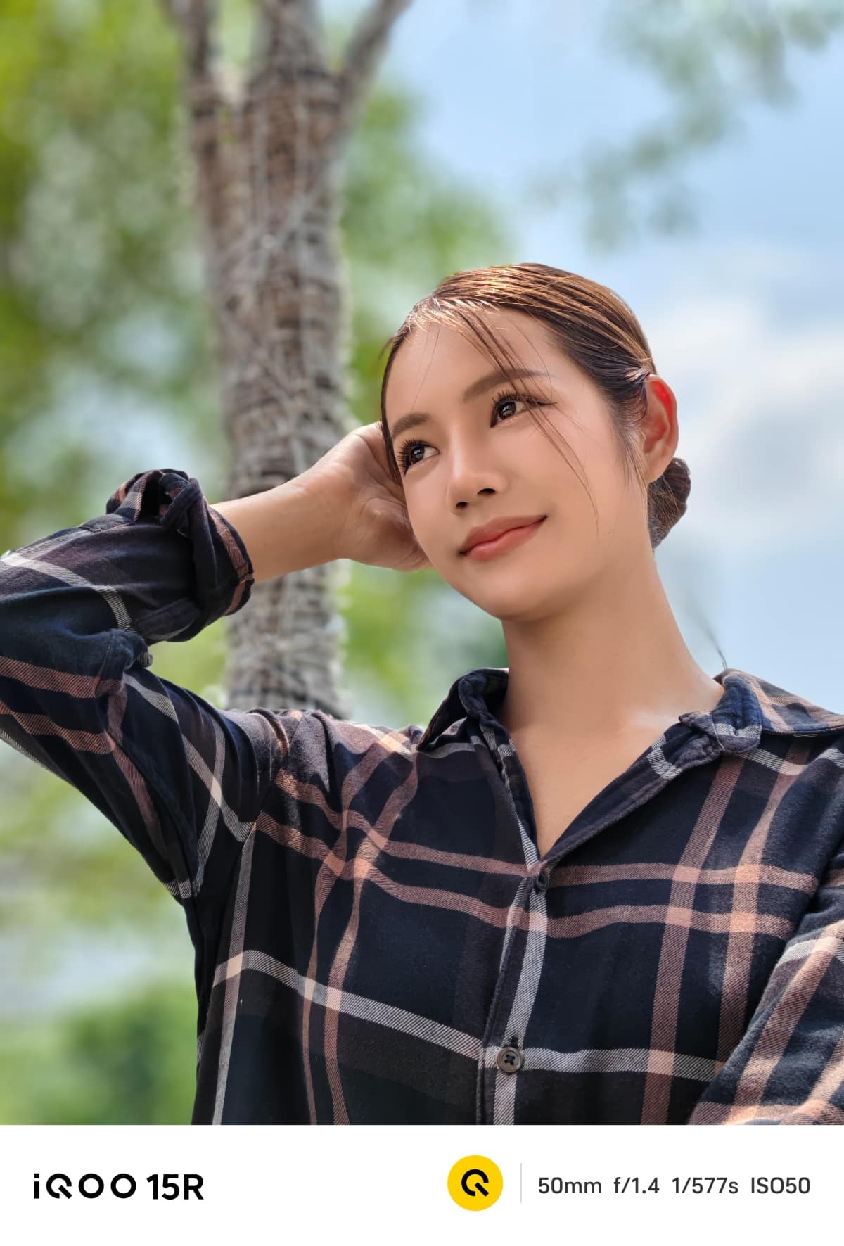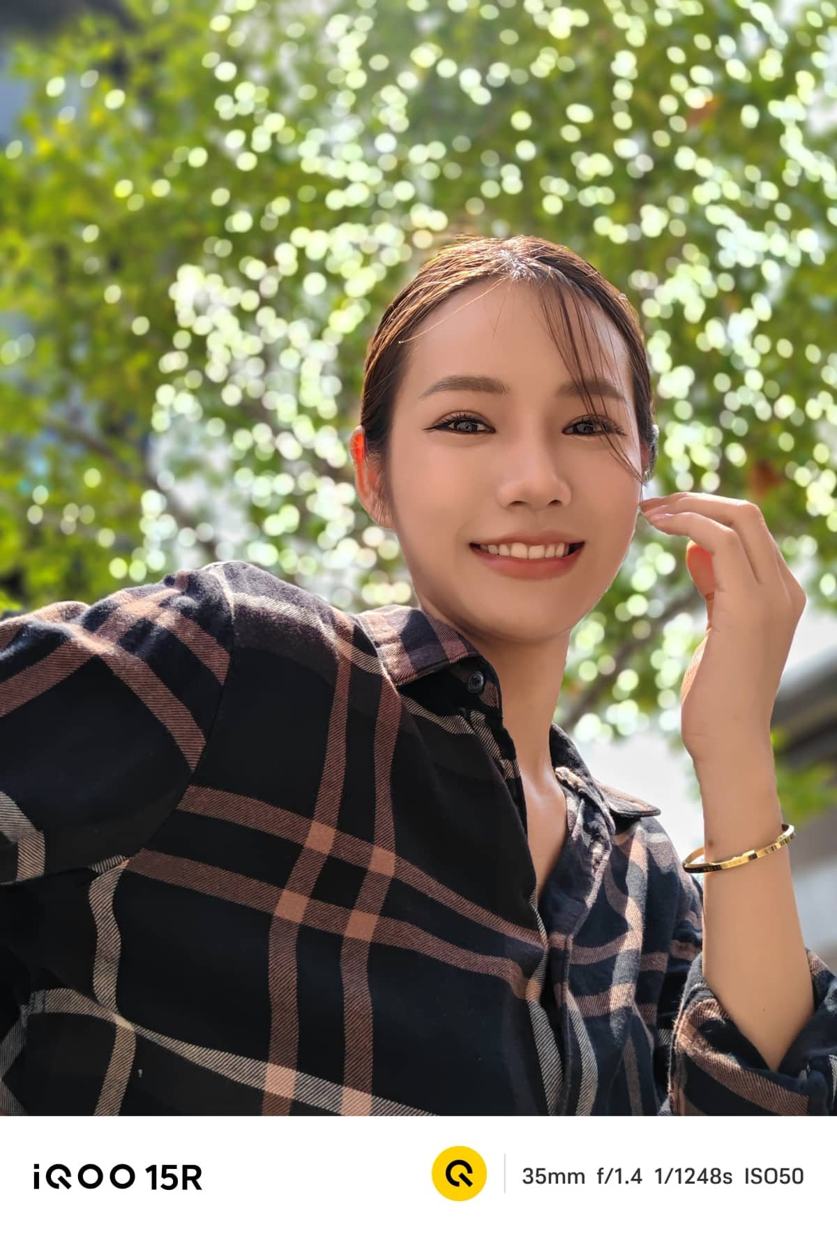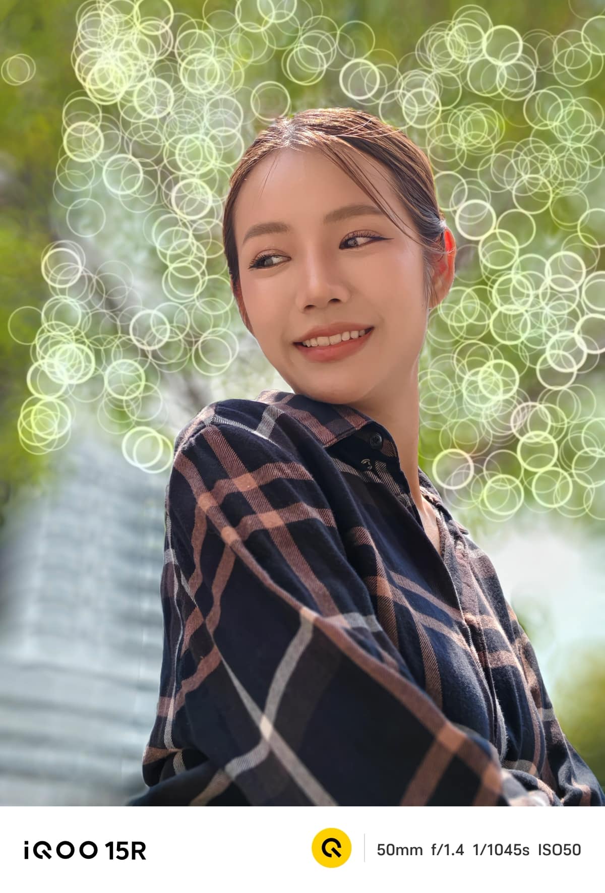 iQOO 15R สามารถถ่าย Portrait ได้สวยงาม โทนสีผิวเป็นธรรมชาติ ไม่ได้ปรับเยอะเกินไป โดยยังรองรับการถ่ายภาพบุคคล 3 ระยะ คือ 23 มม., 35 มม. และ 50 มม. และยังมีโบเก้ให้ใช้งานอีก 3 รูปแบบ ได้แก่ ธรรมชาติ โฟกัสแบบหมุน และฟองสบู่