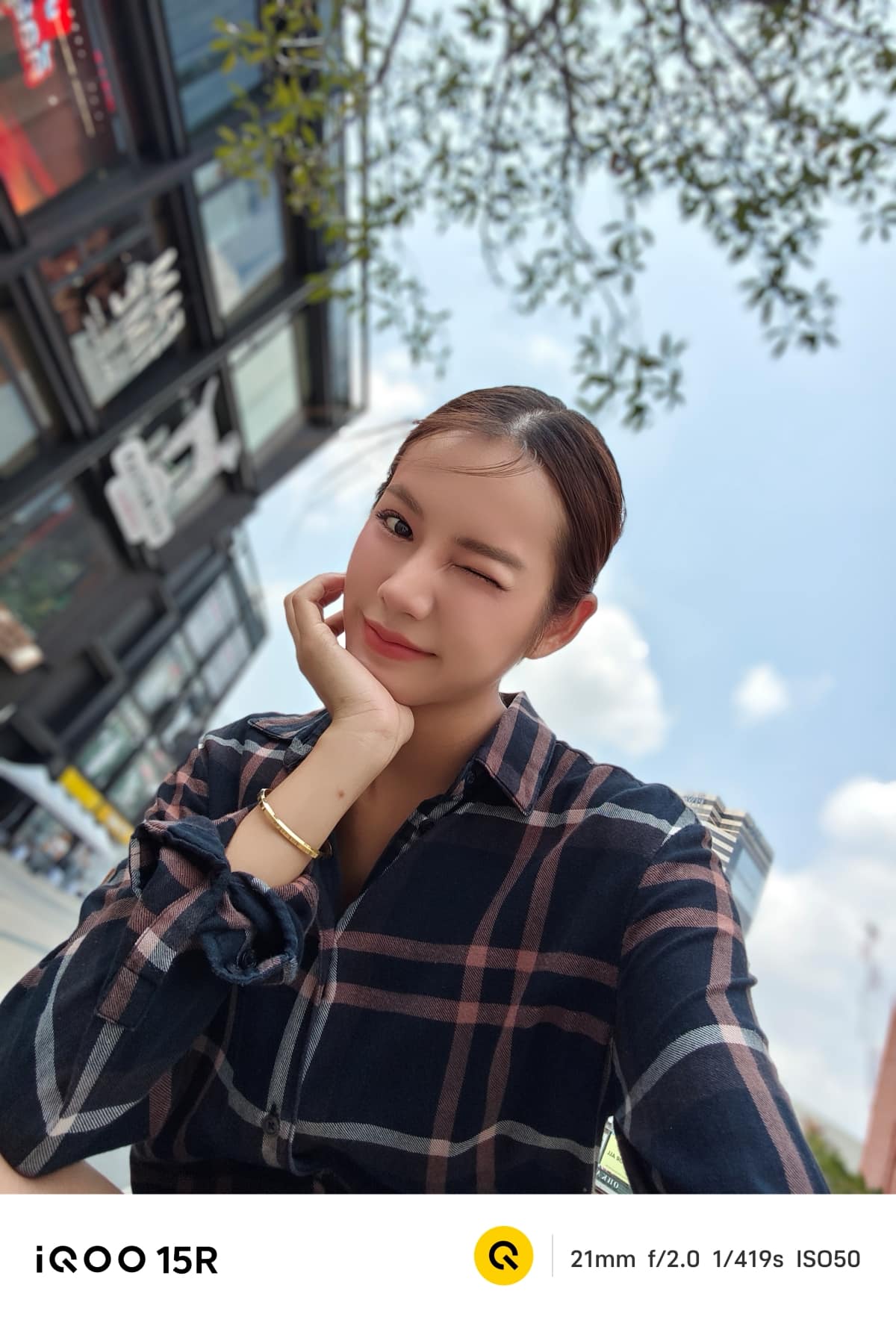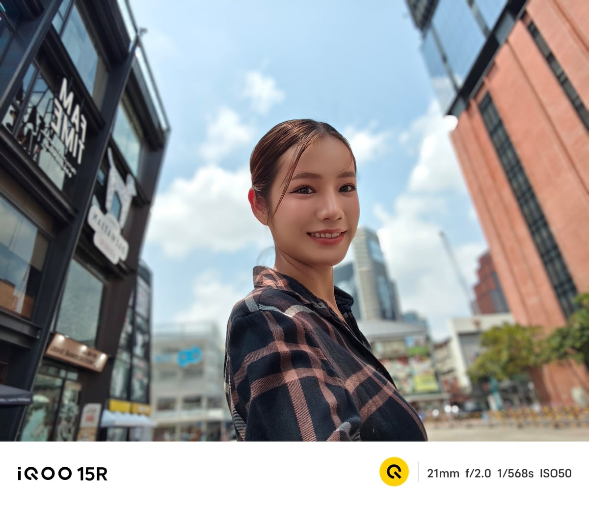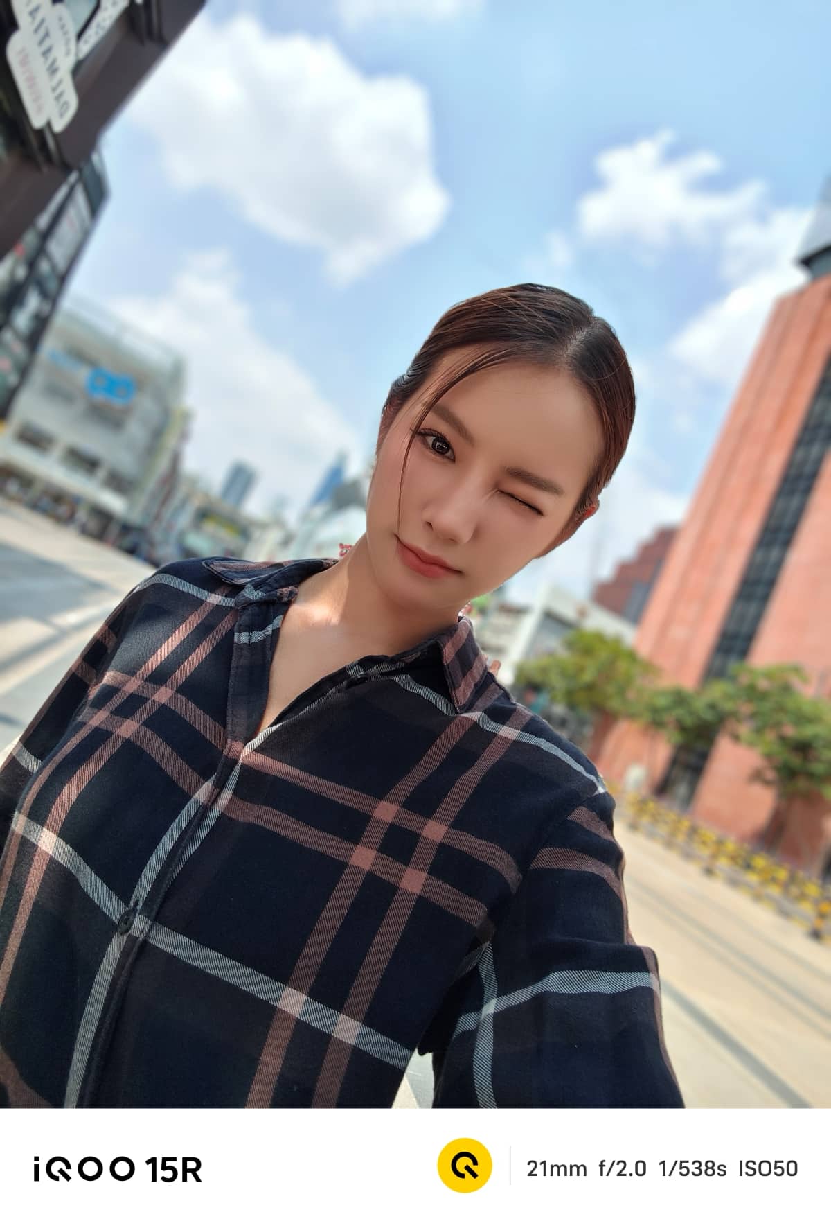 iQOO 15R สามารถถ่าย Portrait ได้สวยงาม โทนสีผิวเป็นธรรมชาติ ไม่ได้ปรับเยอะเกินไป โดยยังรองรับการถ่ายภาพบุคคล 3 ระยะ คือ 23 มม., 35 มม. และ 50 มม. และยังมีโบเก้ให้ใช้งานอีก 3 รูปแบบ ได้แก่ ธรรมชาติ โฟกัสแบบหมุน และฟองสบู่