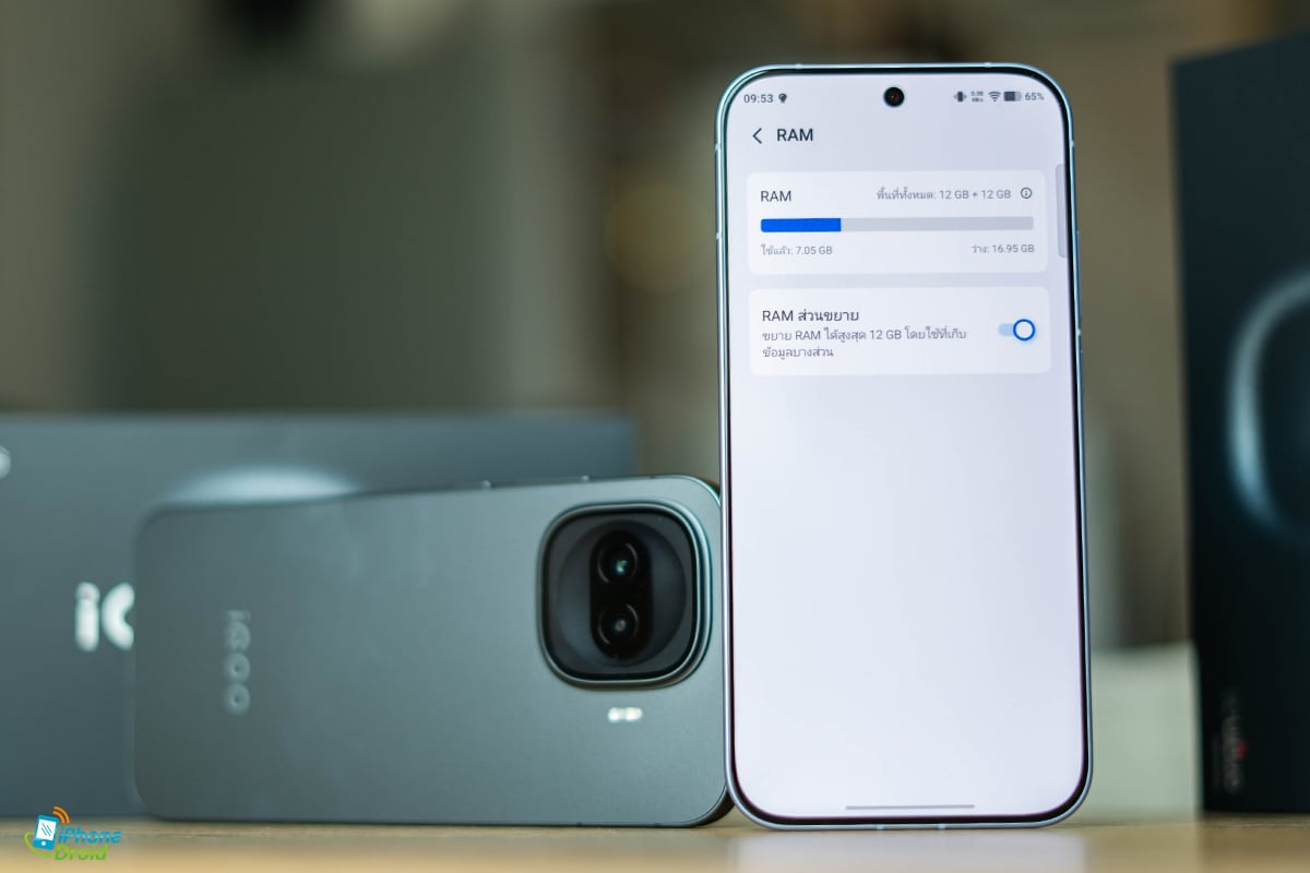 เรื่องของ RAM จัดมาให้ 12GB โดยเป็นแบบ LPDDR5X Ultra มีความเร็วในการรับ-ส่งข้อมูลสูงสุด 9600Mbps ทั้งยังรองรับการเพิ่ม RAM เสมือนได้สูงถึง 12GB รวมเป็น 24GB ทำให้ใช้งานแอปพลิเคชั่นต่างๆ ได้มากขึ้นกว่าเดิม ทั้งนี้ ก็ยังได้ ROM UFS 4.1 ช่วยให้ติดตั้งแอปได้เร็วขึ้นถึง 50%