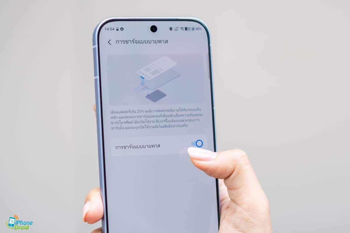 นอกจากนี้ iQOO 15R ยังรองรับการชาร์จแบบบายพาส (Bypass Charging) ที่เป็นการชาร์จไฟเข้าเมนบอร์ดโดยตรงเลย ไม่ได้เข้าแบตเตอรี่ ทำให้แบตเตอรี่ไม่ร้อน ทำให้สุขภาพแบตฯ นั้นใช้งานได้นานขึ้นครับ