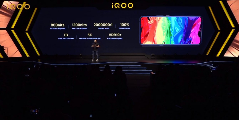 iQOO 3 แสดงผลบนหน้าจอ Polar View Display ชนิด Super AMOLED ขนาด 6.44 นิ้ว ความละเอียด FHD+ (2400 x 1080 พิกเซล) รองรับ HDR10+, Touch Response Rate 180Hz โดยมีกล้องหน้าแบบ Punch Hole ในหน้าจอมุมขวาบนด้วย และสามารถสแกนลายนิ้วมือใต้หน้าจอได้รวดเร็วถึง 0.31 วินาทีเท่านั้น