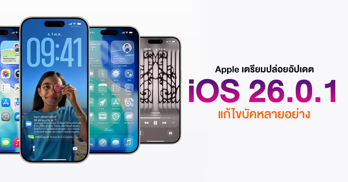 วันนี้ Apple ได้ออกอัปเดต iOS 26.0.1 เพื่อแก้ไขบัคหลายอย่างบน iPhone เป็นที่เรียบร้อยแล้วครับ โดยผู้ที่ใช้งานสามารถกดอัปเดตได้เลย