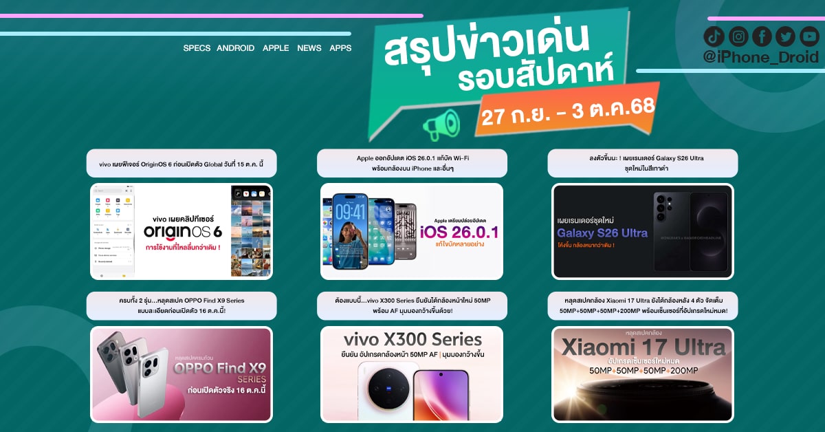 ข่าวเด่นช่วงระหว่างวันที่ 27 กันยายน – 3 ตุลาคม 2568 มาแล้วครับ ใครที่พลาดข่าวเด่นอะไรไปในสัปดาห์นี้ เราได้รวบรวมมาให้แล้วเรียบร้อย ซึ่งสามารถอ่านย้อนหลังและคลิกที่หัวข้อข่าวเพื่อรับชมข่าวเต็มๆ ได้เลย !