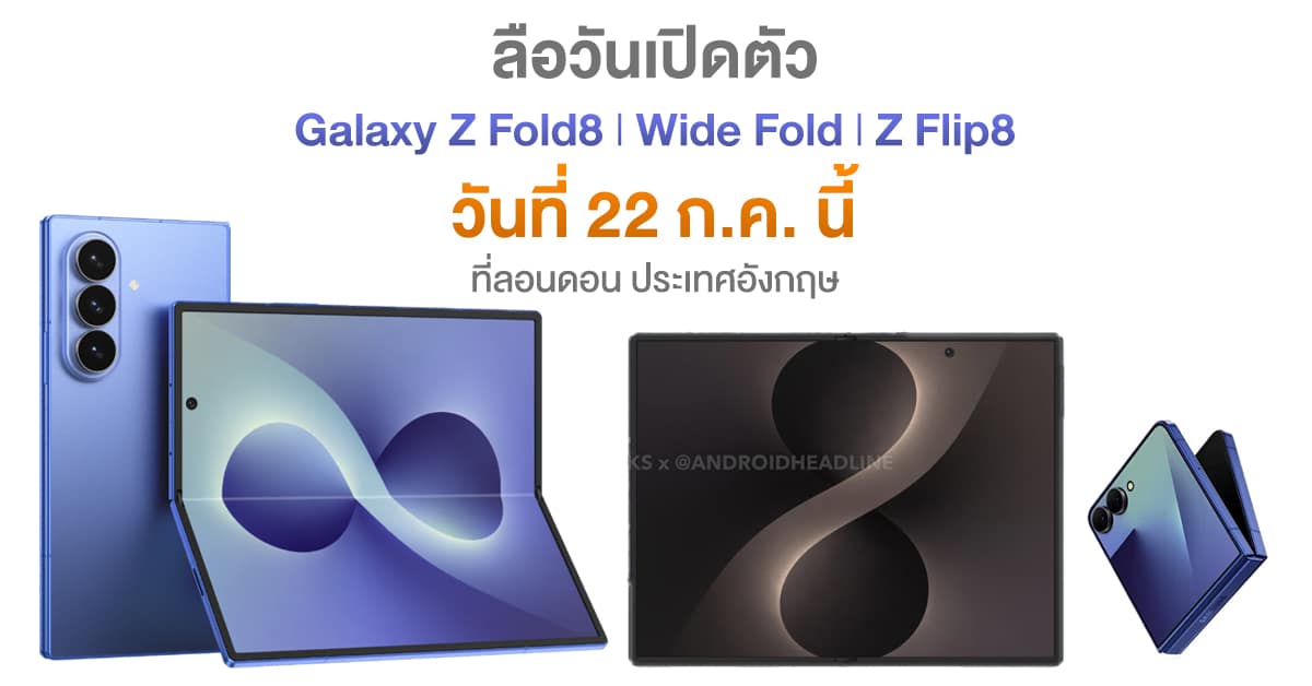 ลือ ! Galaxy Z Fold8, Wide Fold และ Flip8 จะเปิดตัว 22 ก.ค. นี้ ที่ประเทศอังกฤษ