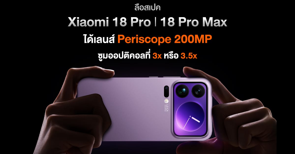 Xiaomi เตรียมพร้อมในการเปิดตัวเรือธงรุ่นใหม่ช่วงปลายปีนี้อย่าง Xiaomi 18 Pro และ Xiaomi 18 Pro Max แล้ว ล่าสุดมีรายงานจากจอมหลุดที่โพสต์บน X ว่ากล้อง Periscope Telephoto ของทั้ง 2 รุ่นจะปรับใหม่ เป็นความละเอียดที่สูงขึ้น แต่…