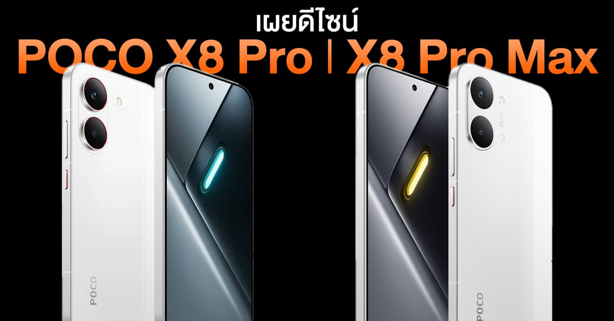POCO มีข่าวลือด้านสเปคของ POCO X8 Pro และ X8 Pro Max อยู่ ล่าสุด ทั้ง 2 รุ่นมีดีไซน์หลุดออกมาเรียบร้อย รวมถึงสเปคต่างๆ ก็ออกมาแทบครบเช่นกันครับ
