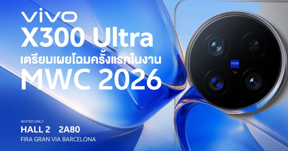 vivo X300 Ultra ถูกพูดถึงกันอย่างมากในช่วงต้นปีที่ผ่านมา โดยเฉพาะเรื่องที่มีโอกาสจะเปิดตัวในตลาด Global ปีนี้ ล่าสุด vivo ก็ออกมาประกาศเองเลยว่า เตรียมเผยโฉมรุ่นนี้ในงาน MWC 2026 ต้นเดือนมีนาคมนี้ครับ!