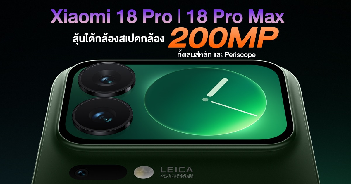 จัดเต็ม ! Xiaomi 18 Pro และ 18 Pro Max อาจได้กล้อง 200MP ถึง 2 ตัว