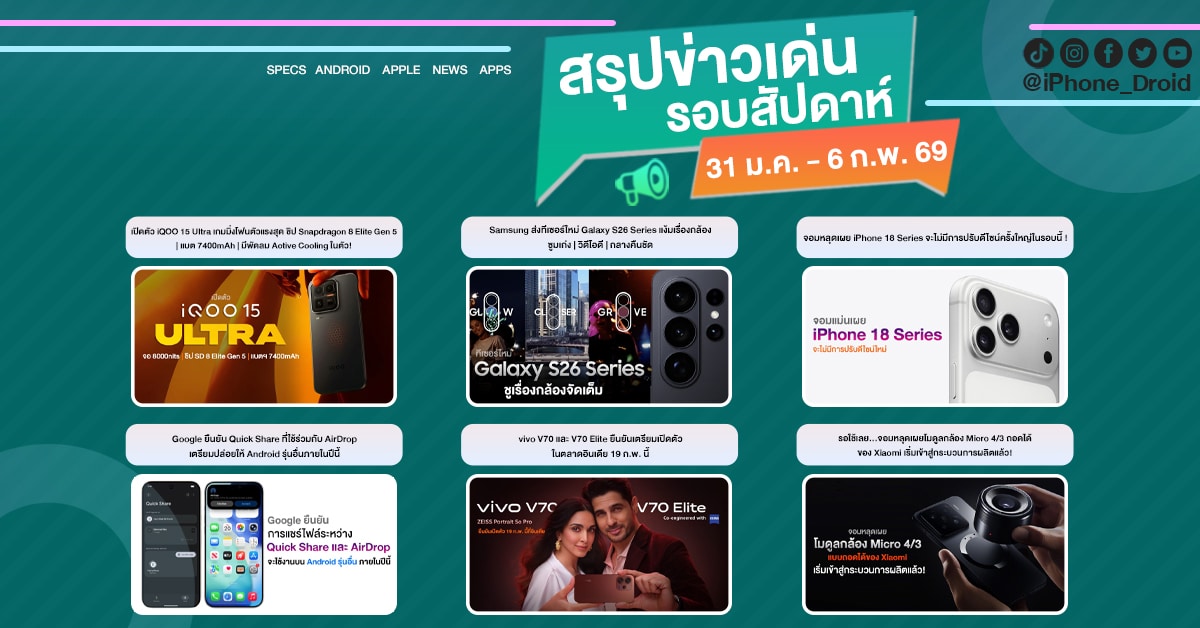 อย่าลืมกดติดตามแฟนเพจ @iPhoneDroid.net, ทวิตเตอร์ @iPhone_Droid และ Threads @iphone_droid จะได้ไม่พลาดข่าวสารดี ๆ ด้วยนะครับ