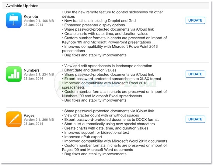 ***สำหรับผู้ที่ซื้อหรือ Activate iPhone, iPod, iPad และ Mac หลังจาก 1 กันยายน 2556 สามารถดาวน์โหลดชุด iWork และ iLife ได้ฟรี ถ้าขึ้นว่าเสียเงินอยู่ให้ logout ออกจากไอดีเดิมที่ใช้อยู่ก่อน หลังจากนั้นชุด iWork และ iLife จะขึ้นว่าฟรี จากนั้นค่อยกดโหลดและล็อคอินไอดีเดิมเข้าไป