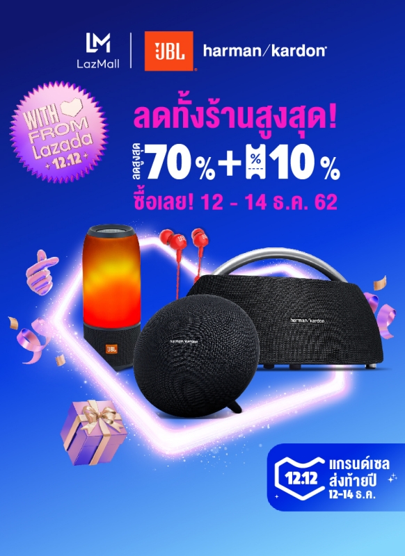 เตรียมช้อปส่งท้ายปีกับ LAZADA 12.12 2019 JBL, Harman Kardon ลดทั้งร้านสูงสุดกว่า 70% พลาดคราวนี้ รออีกทีปีหน้าเลยนะ กับแคมเปญ Lazada 12.12 Grand Year End Sale 2019 ขนลำโพง, หูฟัง JBL และ Harman Kardon ลดสูงสุดกว่า 70% ช้อปเลย คลิก! http://bit.ly/2LfXLXO ตั้งแต่วันที่ 12 – 14 ธ.ค. 62 นี้เท่านั้น!