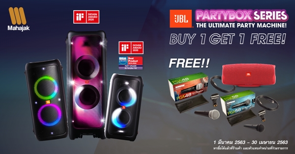 มาแล้ว! โปรสุดคุ้ม เอาใจสายปาร์ตี้กับลำโพง JBLPartyBox Series Buy 1 GET 1 FREE!