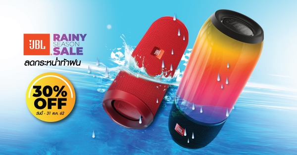 เปียกไม่กลัว กลัวไม่ลด! มหาจักรจัด โปรโมชั่น Rainy Season Sale ลดกระหน่ำไม่เกรงใจฝน กับลำโพงบลูทูธ JBL FLIP4 และ JBL PULSE 3 ลด 30% ทั้ง 2 รุ่นกันเลยทีเดียว เริ่มด้วย