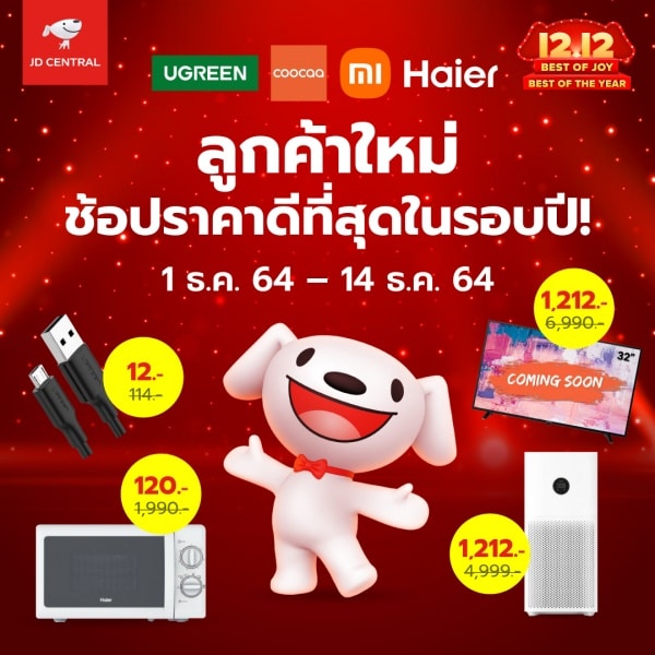 เจดี เซ็นทรัล (JD CENTRAL) ผู้นำด้านเทคโนโลยีอีคอมเมิร์ซและธุรกิจค้าปลีกในประเทศไทย ปล่อยโปรฯ เด็ดส่งท้ายปี กับ JD CENTRAL 12.12 Best of JOY, Best of the Year มหกรรมช้อป “เลขเบิ้ล 12.12” แบบจอยชัวร์สมกับเป็นโปรฯ ที่สุดในรอบปี กับดีลดีราคาเริ่มต้นเพียง 12 บาท จัดเต็มทุกหมวดหมู่สินค้า ไม่ว่าจะเป็นของใช้ในชีวิตประจำวัน เครื่องใช้ไฟฟ้าในบ้าน เสื้อผ้าแฟชั่น อุปกรณ์อิเล็กทรอนิกส์ และอื่นๆ อีกมากมาย พร้อมคูปองส่วนลดสูงสุด 1,212 บาท* และยังแจกความสุขด้วยส่วนลดสูงสุดถึง 90%* กดเก็บคูปองก่อนใครเลยที่ https://bit.ly/3pyDyzS