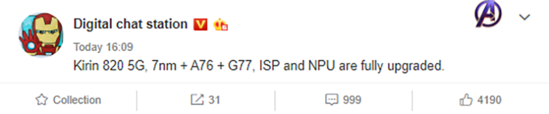 Huawei ก็เตรียมที่จะเปิดตัวหน่วยประมวลผลระดับกลางรุ่นใหม่เหมือนกันโดยจะเป็น Kirin 820 ที่รองรับ 5G โดยตอนนี้มีสเปคบางส่วนหลุดออกมาจาก Weibo แล้วเรียบร้อยครับ