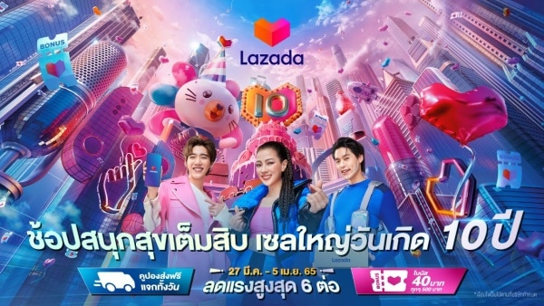 - Lazada EPIC 10th Birthday Super Party กลับมาอีกครั้งกับโชว์สุดพิเศษมากมาย ถ่ายทอดสดออนไลน์ 10 ชั่วโมงเต็มผ่านทาง LazLive เตรียมพร้อมนับถอยหลังสู่แคมเปญช้อปสนุกสุขเต็มสิบ เซลใหญ่วันเกิด 10 ปี