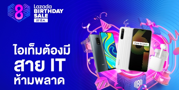 ลาซาด้าชวนนักช้อปสายเทค ช้อปอยู่บ้านวันเกิดครบรอบ 8 ปีกับแคมเปญ “Lazada 8th Birthday Sale” ส่งสมาร์ทโฟนสเป็คแรง ราคาดี แกดเจ็ตล้ำดีไซน์โดน พร้อมส่วนลด โปรโมชั่นและของแถมจัดเต็ม มาดูกันว่ามีสมาร์ทโฟนและแกดเจ็ตเด็ดๆ อะไรน่าสอยบ้าง แอบกระซิบว่าไฮไลต์เด็ดบางชิ้นก็มีเฉพาะแค่ในลาซาด้าที่เดียวด้วยนะ! ปักหมุดรอ 27 มีนาคมนี้ วันเดียวเท่านั้น!