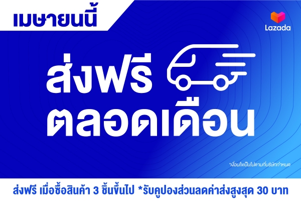 พิเศษไปกว่านั้น ลาซาด้ามอบโปรโมชั่น ส่งฟรีตลอดเดือนเมษายน เมื่อสั่งซื้อสินค้า 3 ชิ้นขึ้นไป รับคูปองส่วนลดค่าจัดส่ง 30 บาท ให้ทุกคนช้อปที่บ้านแบบสบายๆ ไร้กังวลเรื่องค่าจัดส่ง