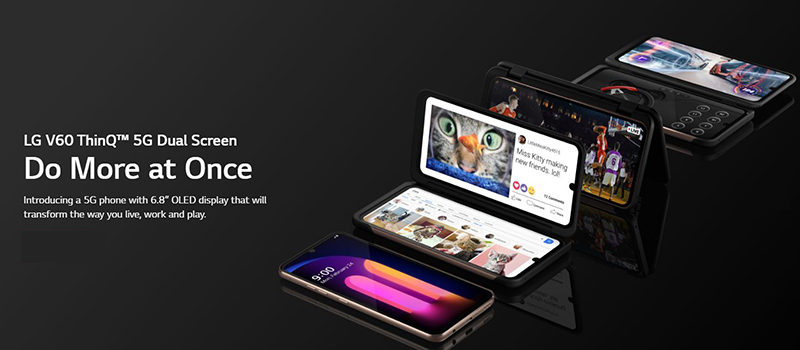 ทั้งนี้อุปกรณ์เสริมตามแบบฉบับของ LG คือการใช้ 2 หน้าจอ Dual Screen ที่ช่วยให้มีหน้าจอแสดงผล OLED ขนาด 6.8 นิ้วเพิ่มขึ้นมาอีก โดยเพิ่มความสามารถในการพับให้นิ่งได้คล้ายกับการตั้งโน๊ตบุ๊ค ขณะที่ด้านหน้าอุปกรณ์เสริมยังมีหน้าจอเล็กๆ ขนาด 2.1 นิ้วเพื่อบอกสถานะต่างๆ ของเครื่อง ซึ่งอุปกรณ์รุ่นนี้จะใช้การเชื่อมต่อกันผ่านพอร์ต USB Type-C