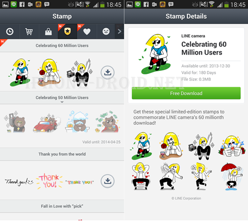 LINE camera ฉลองผู้ใช้งานทะลุ 60 ล้าน แจกฟรีแสตมป์ James ดาวน์โหลดได้แล้ววันนี้ จนถึงวันที่ 30 ธันวาคมนี้ ระยะเวลาการใช้งาน 180 วัน วิธีการดาวน์โหลดง่าย ๆ เพียงเลือกรูปภาพมาแต่ง 1 รูป แล้วกดที่ไอคอนสแตมป์เพื่อดาวน์โหลดครับ