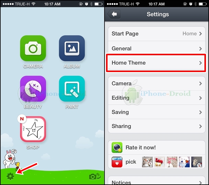 สำหรับคนที่จะเปลี่ยนหน้า Home เป็น Brown, Cony และ Sally ให้ไปที่หน้า Home และเลือกที่ฟันเฟืองแบบด้านล่างนี้นะครับ และเลือกไปที่ Home Theme