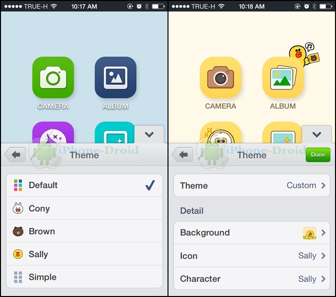 จากนั้นเลือกเปลี่ยนธีมได้ทั้ง Brown, Cony, และ Sally ได้เลย สามารถเลือกเปลี่ยน background, icon และ character ได้เองอีกด้วย