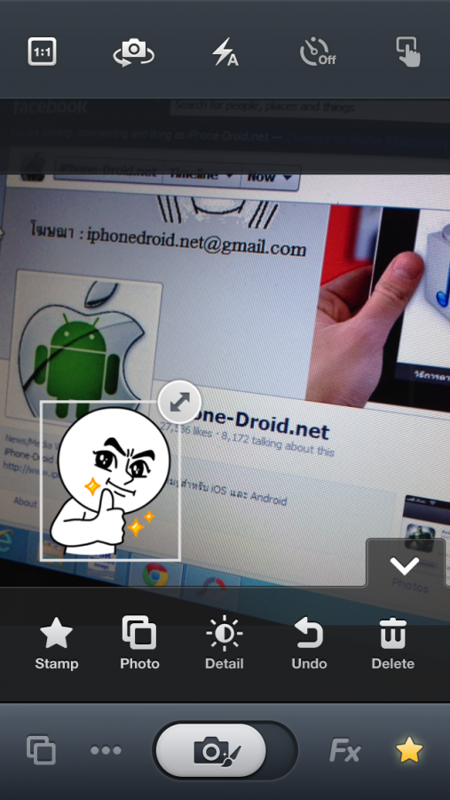 1. ฟังก์ชั่นแรกที่เพิ่มมาใหม่นั่นคือสามารถใส่ Stamp ขณะถ่ายภาพได้ทันที โดยที่ไม่ต้องถ่ายแล้วมาใส่ภายหลังเหมือนในเวอร์ชั่นก่อน