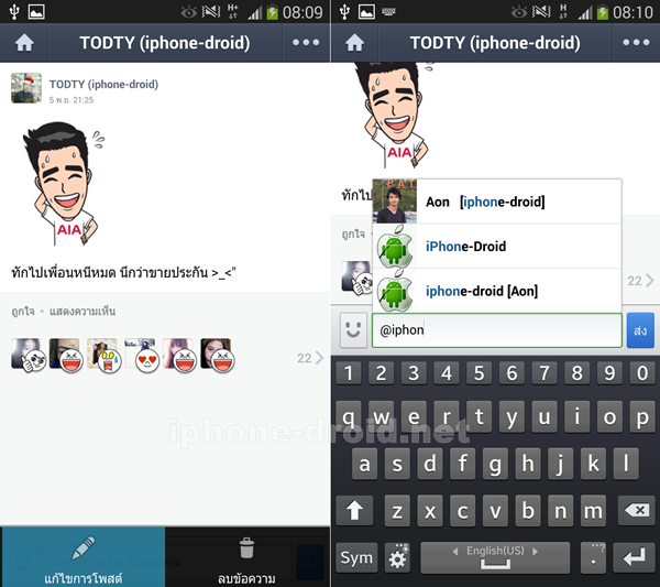 - ปรับปรุงไทม์ไลน์โดยสามารถกลับมาแก้ไข และเปลี่ยนแปลงความเป็นส่วนตัว สำหรับโพสต์ที่เผยแพร่ออกไปแล้ว และเพิ่มคุณลักษณะใหม่ที่ผู้ใช้งานสามารถตอบกลับความคิดเห็นบนไทม์ไลน์โดยใช้ “@ชื่อเพื่อน” ได้แล้ว