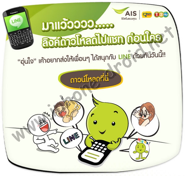 AIS ได้เลื่อนวันในการให้ลูกค้าดาวน์โหลด LINE สำหรับ BlackBerry ได้เร็วขึ้น โดยลูกค้ากลุ่มแรกที่ได้มาลงทะเบียนไว้ ได้ใช้ก่อนใครเริ่มตั้งแต่วันนี้ โดยจะมี email ส่งมาให้และสามารถดาวโหลดได้ทันที ไม่ต้องรอถึงวันที่ 20 สิงหาคม 2555 ครับ