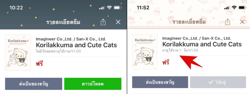 ซึ่งถ้าโหลดได้ทันช่วงฟรีสามารถใช้งานได้ตลอดไปไม่มีวันหมดอายุนะครับ วิธีดาวน์โหลดเข้าไปที่ ธีม > แคมเปญ > Korilakkuma and Cute Cats ดาวน์โหลด