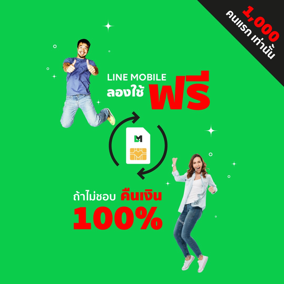 - แคมเปญ “ลองใช้ฟรี LINE MOBILE” มอบสิทธิ์พิเศษให้กับผู้สมัครใช้งานจำนวนจำกัด 1,000 ท่านแรกเท่านั้น (หากสิทธิ์ครบตามจำนวน 1,000 คน จะได้รับแจ้งเตือนก่อนการกดสั่งซื้อแพ็กเกจ) ผู้สนใจสามารถลงทะเบียนซื้อซิมตามขั้นตอนบนหน้าเว็บ https://th.linemobile.com/th/