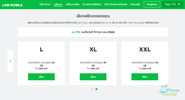 - แพ็กเกจ L เน็ตความเร็วสูงสุด 20 GB โทร 300 นาที