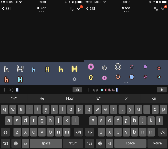 หรือถ้าไม่เข้ามาที่เมนูอิโมจิ สามารถพิมพ์ตัวอักษรภาษาอังกฤษตัวต่างๆ แอพจะแนะนำตัวอักษรขึ้นมาให้เลยครับ