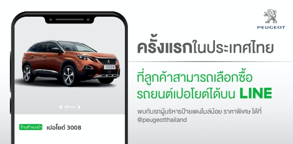 โดยนอกจากจะใช้ LINE Official Account (LINE OA) เป็นช่องทางหลักในการให้บริการและมอบประสบการณ์ที่ดีต่อลูกค้าแล้ว เปอโยต์ยังเป็นแบรนด์ยานยนต์รายแรกที่ได้ใช้เครื่องมือใหม่ล่าสุดของ LINE คือ MyShop มาช่วยเสริมประสิทธิภาพของ LINE OA ให้ครบวงจรมากยิ่งขึ้น ทำให้ทีมงานสามารถดูแลระบบสินค้า ดูแลลูกค้าผ่าน LINE ได้รวดเร็วทันใจ ในขณะเดียวกัน ลูกค้าสามารถเลือกซื้อรถยนต์ ติดต่อฝ่ายขาย รวมถึงจ่ายเงินผ่าน LINE OA ได้เสร็จสรรพในที่เดียว เป็นการเปิดมิติใหม่ในภาคธุรกิจให้แก่แบรนด์อื่นๆ ได้ศึกษาทำการตลาดได้อย่างมีประสิทธิภาพมากขึ้น