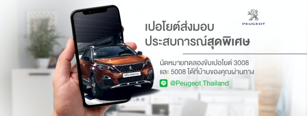 ยานยนต์ไทย ให้ผู้บริโภคสามารถเลือกซื้อรถผู้บริหารป้ายแดงไมล์ต่ำ พร้อมนัดหมายเพื่อทดลองขับรถยนต์เปอโยต์ผ่าน LINE ได้ตั้งแต่วันนี้เป็นต้นไป