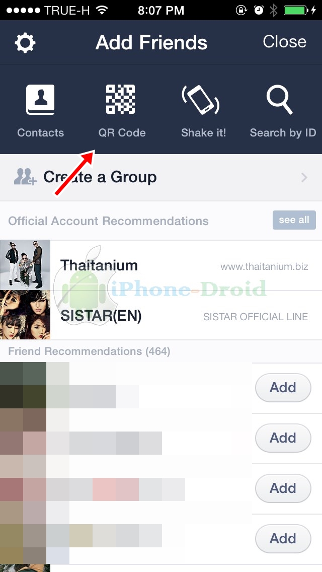 วิธีล็อคอินไลน์บน PC หรือ Mac ด้วย QR Code ให้เข้าไปที่แอพ LINE ที่เราล็อคอินใช้งานอยู่แล้วนะครับ เลือกไปที่ Add Friends และเลือกไปที่ QR Code จากนั้นกล้องจะถูกเปิดขึ้นมาครับ