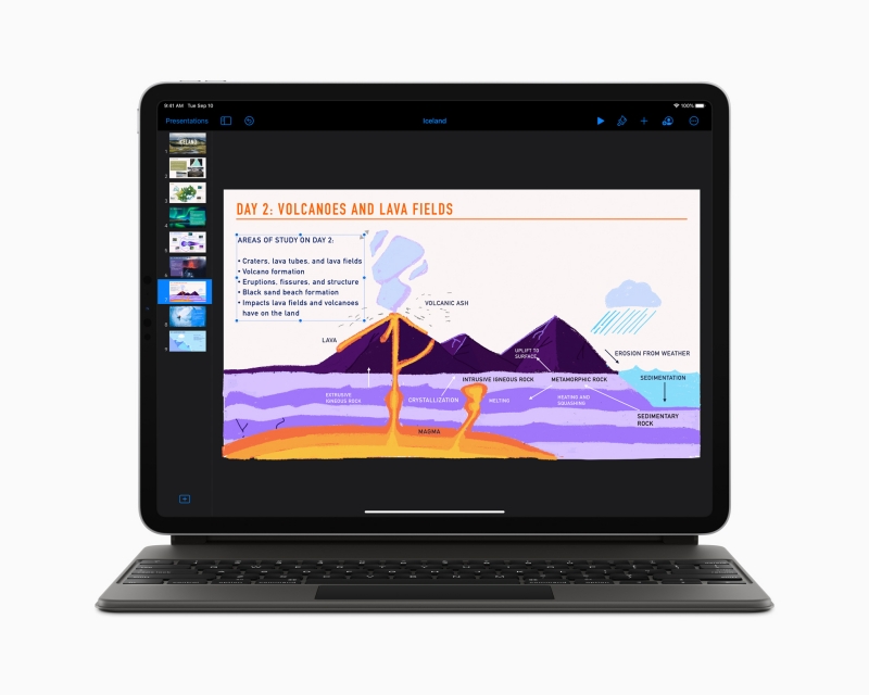 Magic Keyboard ใช้ประโยชน์เต็มที่จากประสบการณ์การใช้งานที่ไม่เหมือนใครของ iPadOS โดยในขณะที่ผู้ใช้เคลื่อนนิ้วไปบนแทร็คแพดที่มีอยู่ในตัว เคอร์เซอร์จะปรับเปลี่ยนอย่างสวยงามเพื่อเน้นองค์ประกอบในอินเทอร์เฟซผู้ใช้ให้โดดเด่น ส่วนคำสั่งนิ้วแบบ Multi-Touch บนแทร็คแพดก็ทำให้การใช้งานส่วนต่างๆ ของทั้งระบบนั้นทั้งง่ายและรวดเร็วโดยที่ผู้ใช้ไม่จำเป็นต้องยกมือขึ้นมาเลย และการรองรับแทร็คแพดใน iPadOS ยังออกแบบมาให้ทำงานกับแอพที่ลูกค้าใช้ทุกวันได้อย่างดีเยี่ยม ไม่ว่าจะเขียนหรือแก้ไขข้อความใน Pages และแอพโน้ตก็ทำได้สบายๆ ทั้งยังทำงานกับวัตถุหลายชิ้นใน Keynote ได้ง่ายยิ่งกว่าที่เคย และเมื่อมีความแม่นยำมากขึ้นอีกระดับแล้ว การสร้างหรือจัดระเบียบสเปรดชีทใหญ่ๆ ใน Numbers ก็ไม่ใช่เรื่องยากอีกต่อไป ดูเพิ่มเติมเกี่ยวกับ iPadOS ที่ apple.com/th/ipados