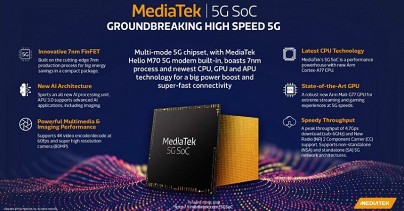 สำหรับหน่วยประมวลผล 5G ของ MediaTek จะเริ่มมีการใช้งานจริงในช่วงต้นปี 2020 โดยตั้งเป้าไว้ว่าจะใช้ร่วมกับสมาร์ทโฟนถึง 60 ล้านเครื่อง