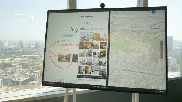 นอกจากนี้ แอปพลิเคชัน Microsoft Whiteboard ยังช่วยให้ทุกคนทำงานร่วมกันได้บนกระดานดิจิทัลที่อ่าน วาด และเขียนได้จากหลายหน้าจอพร้อมกัน เพื่อให้ง่ายต่อการจัดระเบียบเมื่อเสร็จสิ้น และให้ทีมทำงานอย่างต่อเนื่องโดยไม่สะดุด ฟีเจอร์ AI ที่มาพร้อมตัวอุปกรณ์ยังช่วยให้ผู้ใช้สามารถแสดงความคิดออกมาในชิ้นงานได้ในเวลาอันน้อยนิด ด้วยการรองรับหมึกดิจิทัลเพื่อการวาดเขียนบนกระดานเสมือนจริงบนคลาวด์ จึงทำให้การรวมทีมหาไอเดียกลายเป็นเรื่องง่ายในทุกโอกาส