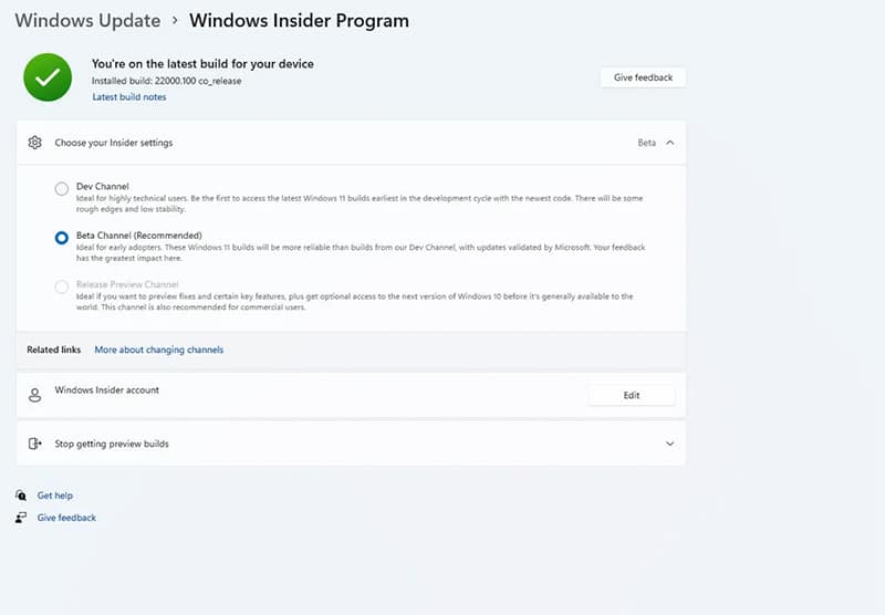 แต่หากใครที่ต้องการทดสอบ Windows 11 แบบ Beta Channel ก็ให้เข้าไปได้ที่ Settings > Windows Update > Windows Insider Program จากนั้นก็ให้เลือก Beta Channel และทำการอัปเดทก็จะใช้งานได้ทันทีครับ