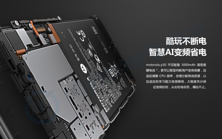 แบตเตอรี่ขนาด 3,000mAh ที่รองรับการชาร์จพลังงานแบบ 18 วัตต์ทำให้ชาร์จแบตเตอรี่ได้รวดเร็วมากยิ่งขึ้น และสมาร์ทโฟน Moto P30 ระบบปฏิบัติการ Android 8.1 Oreo คุณสมบัติเด่นอื่น ๆ ได้แก่ ระบบเสียงรอบทิศทาง Dolby 360 และคุณสมบัติหน้าจอแยก U-touch