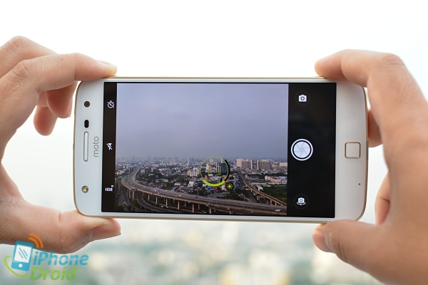 แอพกล้องของ Moto Z Play มีหน้าตาที่ดูเรียบง่าย ไม่ซับซ้อน มีโหมดถ่ายภาพให้เลือกใช้งานเพียงไม่กี่โหมด ได้แก่ โหมดอัตโนมัติ, พาโนรามา, โหมดโปรหรือปรับค่ากล้องเอง และการบันทึกวิดีโอ