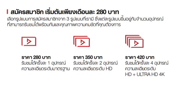 Netflix เปิดโอกาสให้ทดลองใช้บริการฟรีในเดือนแรกและค่าสมาชิกรายเดือนสาหรับเดือนต่อมาเริ่มต้นเพียง 280 บาท สมาชิกของ Netflix สามารถเพลิดเพลินไปกับรายการทีวีและภาพยนตร์ต่างๆ มากมาย ตั้งแต่รายการที่ สร้างสรรค์โดย Netflix ซึ่งได้รับการยอมรับอย่างแพร่หลาย อาทิ สเตรนเจอร์ ธิงส์ (Stranger Things) และ ออ เรนจ์ อีส เดอะ นิว แบล็ค (Orange is the New Black) ไปจนถึงซีรีส์และภาพยนตร์สัญชาติอเมริกัน ยุโรป และ เอเชีย รวมถึงสารคดีและรายการสาหรับเด็กอีกมากมาย นอกจากนีร้ ายการและภาพยนตร์ใหม่ๆ ที่สร้างสรรค์โดย Netflix ยังเปิดตัวให้รับชมทุกตอนทั้งซีซันพร้อมกันทั่วโลกในรูปแบบภาษาไทยให้มากขึ้น